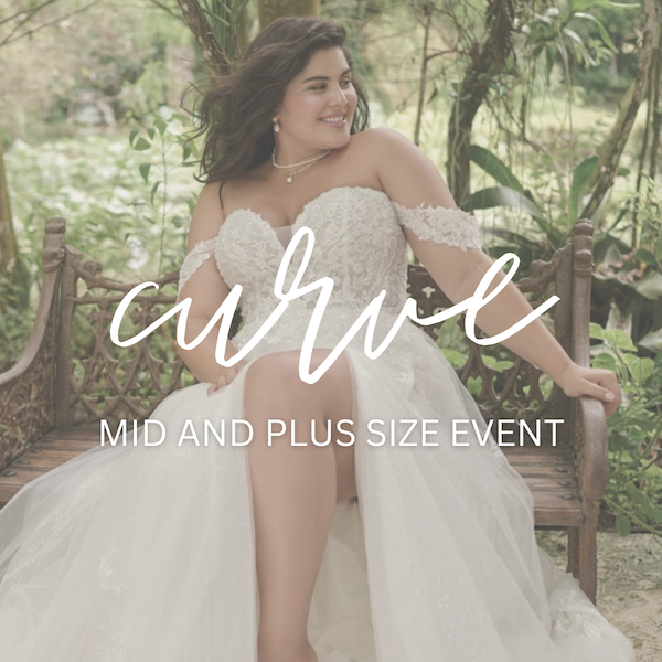 Appointments during the Curve Event book quickly, and spots are limited. Booking early ensures you have a private appointment with one of our stylists, plenty of time to try on gowns, and the chance to explore our most popular plus size bridal gowns.