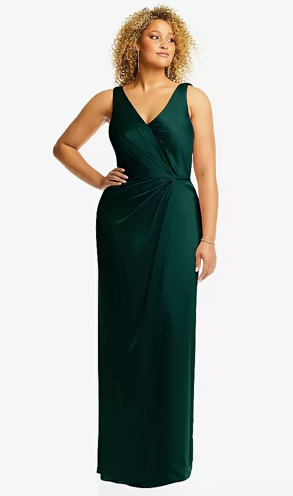 Faux Wrap Whisper Satin Maxi Dress with Draped Tulip Skirt