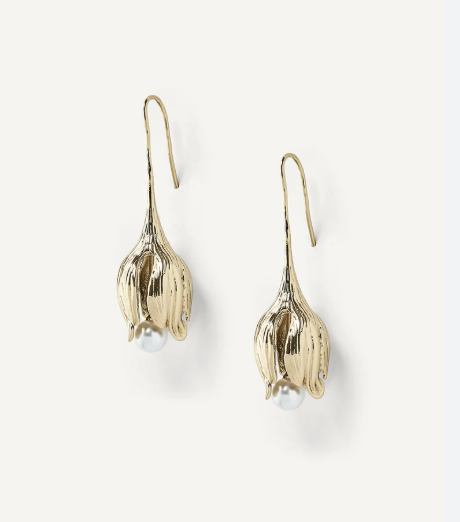 Graceful gold blooms cradle a luminous pearl in the romantic Mara Earrings.