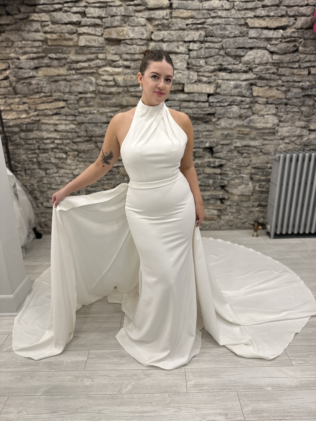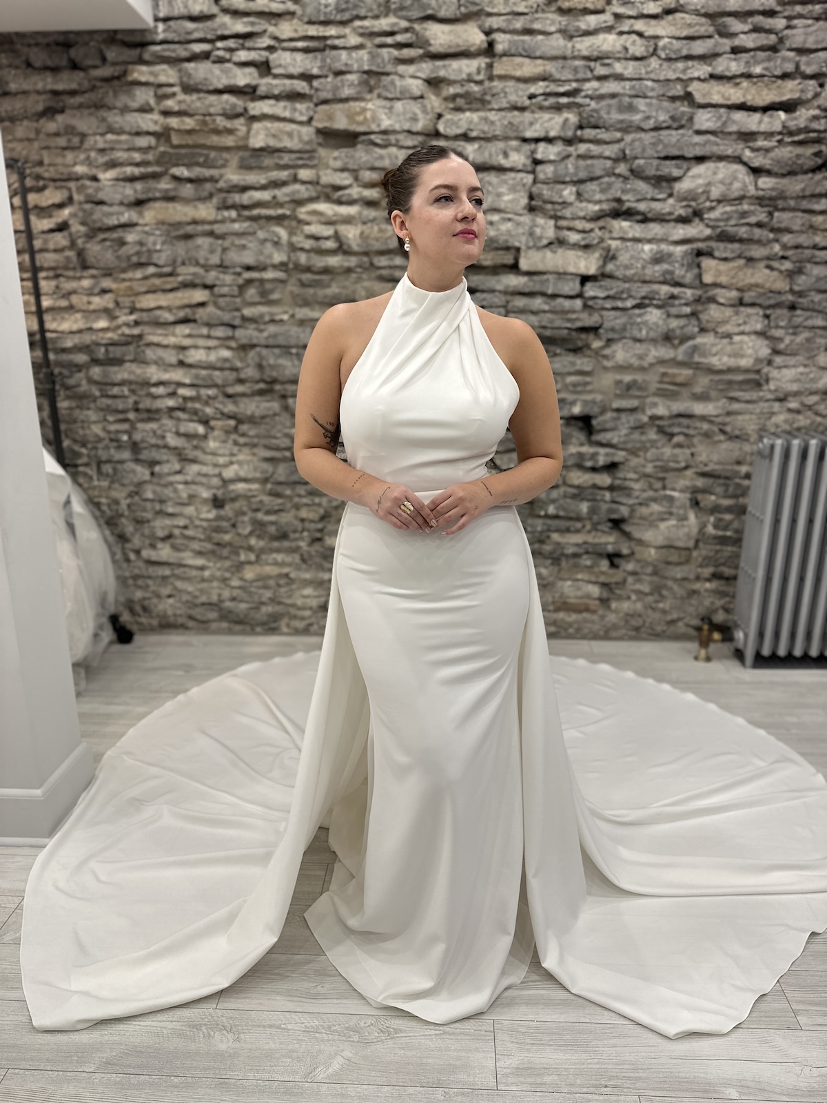 Elevate your bridal look with this sleek crepe overskirt, designed to add a touch of effortless glam
